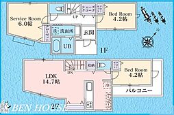 | 間取り | 4LDK 間取り内訳:リビングダイニングキッチン 18帖(1階)・和室 4.5畳(1階)・洋室 6帖(2階)・洋室 6.5帖(2階)・洋室 8.5帖(2階) |