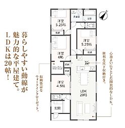 | 間取り | 4LDK 間取り内訳:リビングダイニングキッチン 20帖(1階)・洋室 6帖(1階)・洋室 5.2帖(1階)・洋室 5.2帖(1階)・洋室 4.5帖(1階) |