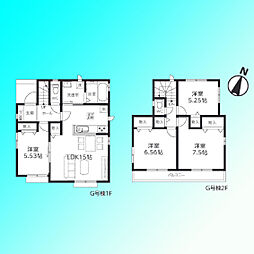 LDKは広々19畳超にパントリー付き。2階建ての新築住宅です。