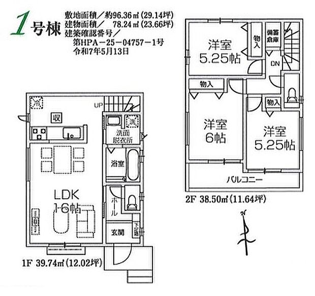 | 間取り | 3LDK 間取り内訳:リビングダイニングキッチン 16帖(1階)・洋室 5.2帖(2階)x2・洋室 6帖(2階) |