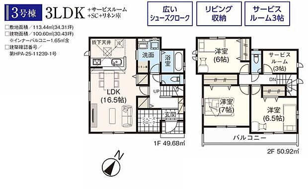 | 間取り | 3LDK 間取り内訳:リビングダイニングキッチン 16.5帖(1階)・洋室 6帖(2階)・洋室 6.5帖(2階)・洋室 7帖(2階) |