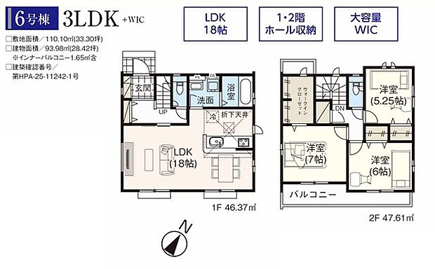 | 間取り | 3LDK 間取り内訳:リビングダイニングキッチン 18帖(1階)・洋室 5.2帖(2階)・洋室 6帖(2階)・洋室 7帖(2階) |