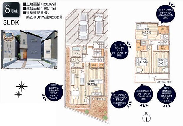 間取り内訳:リビングダイニングキッチン 18.1帖(1階)・洋室 6帖(2階)・洋室 6.2帖(2階)・洋室 6.5帖(2階)