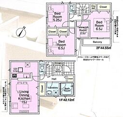 | 間取り | 4LDK 間取り内訳:リビングダイニングキッチン 16帖(1階)・洋室 4.5帖(1階)・洋室 5.2帖(2階)・洋室 6帖(2階)・洋室 7帖(2階) |