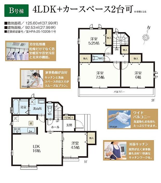 | 間取り | 4LDK 間取り内訳:リビングダイニングキッチン 16帖(1階)・洋室 4.5帖(1階)・洋室 5.2帖(2階)・洋室 6帖(2階)・洋室 7帖(2階) |