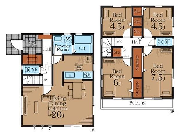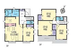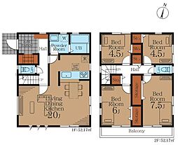 | 間取り | 4LDK 間取り内訳:リビングダイニングキッチン 20帖(1階)・洋室 4.5帖(2階)・洋室 4.5帖(2階)・洋室 7.5帖(2階)・洋室 6帖(2階) |