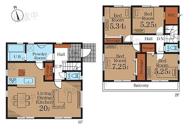 | 間取り | 4LDK 間取り内訳:リビングダイニングキッチン 20帖(1階)・洋室 5.3帖(2階)・洋室 7.2帖(2階)・洋室 5.2帖(2階)・洋室 5.2帖(2階) |