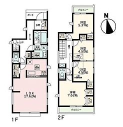 | 間取り | 4LDK 間取り内訳:リビングダイニングキッチン 20帖(1階)・洋室 5.3帖(2階)・洋室 7.2帖(2階)・洋室 5.2帖(2階)・洋室 5.2帖(2階) |