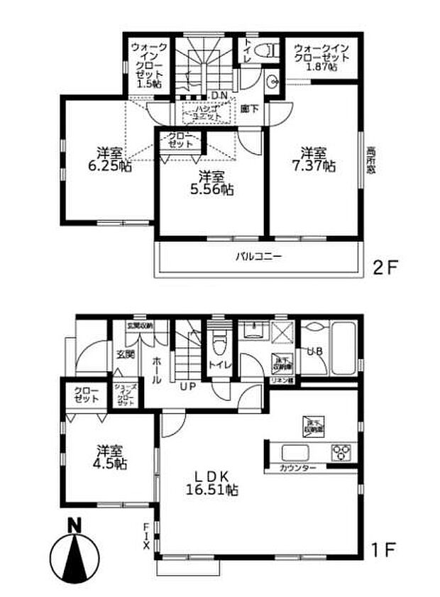 | 間取り | 4LDK 間取り内訳:リビングダイニングキッチン 16.5帖(1階)・洋室 4.5帖(1階)・洋室 6.2帖(2階)・洋室 5.5帖(2階)・洋室 7.3帖(2階) |