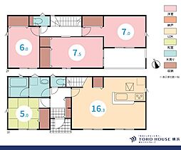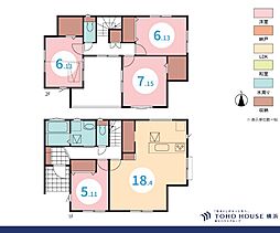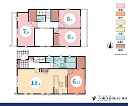 | 間取り | 4LDK 間取り内訳:リビングダイニングキッチン 18帖(1階)・洋室 5.7帖(2階)・洋室 6.7帖(2階)・洋室 5帖(2階)・洋室 5.3帖(2階) |