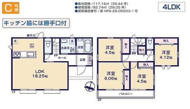 | 間取り | 4LDK 間取り内訳:リビングダイニングキッチン 18.2帖(1階)・洋室 4.1帖(2階)・洋室 4.5帖(2階)x2・洋室 6帖(2階) |