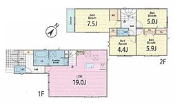 | 間取り | 4LDK 間取り内訳:リビングダイニングキッチン 17帖(1階)・洋室 6.7帖(1階)・洋室 4.5帖(2階)・洋室 7.2帖(2階)・洋室 8.2帖(2階) |