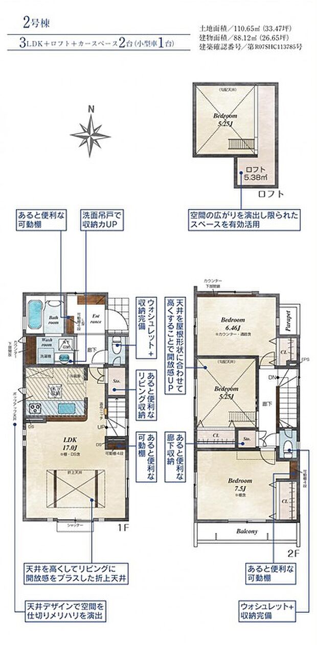 ■2路線2駅利用可■閑静な住宅街■住環境良好■陽当り良好■並列駐車可(車種による)■LDK17帖■全居室5帖以上■ロフトあり■食洗機・浴室乾燥暖房機付き■住宅性能評価取得