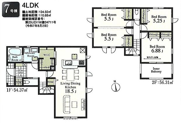 | 間取り | 4LDK 間取り内訳:リビングダイニングキッチン 18.5帖(1階)・洋室 5.2帖(2階)・洋室 5.5帖(2階)x2・洋室 6.8帖(2階) |