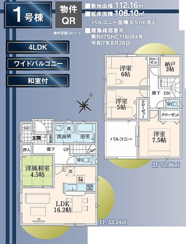 | 間取り | 4LDK 間取り内訳:リビングダイニングキッチン 16.2帖(1階)・和室 4.5畳(1階)・洋室 5帖(2階)・洋室 6帖(2階)・洋室 7.5帖(2階) |