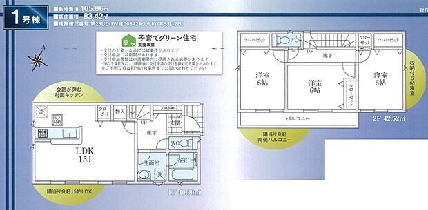 間取り内訳:リビングダイニングキッチン 15帖(1階)・洋室 6帖(2階)x3
