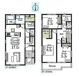 | 間取り | 4LDK 間取り内訳:リビングダイニングキッチン 16帖(1階)・和室 4.5畳(1階)・洋室 6帖(2階)x2・洋室 8.5帖(2階) |