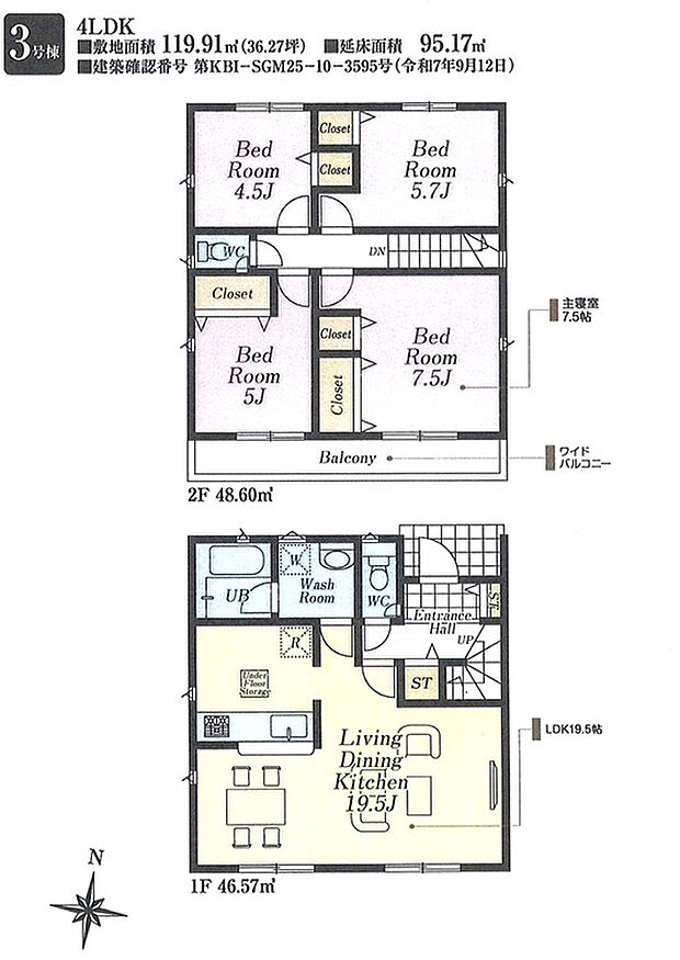 | 間取り | 4LDK 間取り内訳:リビングダイニングキッチン 16帖(1階)・和室 4.5畳(1階)・洋室 6帖(2階)x2・洋室 8.5帖(2階) |