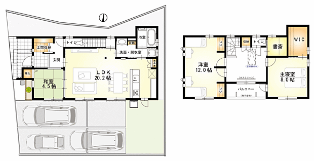 • 「建築条件付き土地」の「建物プラン例」は、土地購入者の設計プランの一例であり、プランの採用可否は任意です。