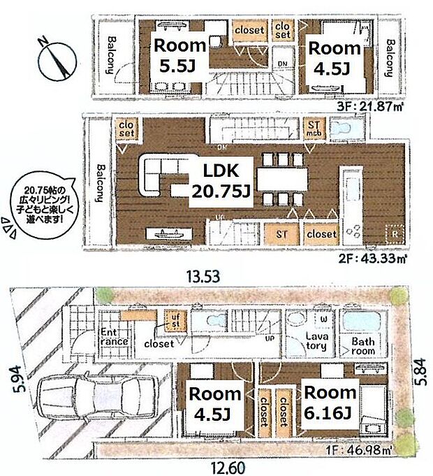 | 間取り | 3SLDK | 建物階 | 木造3階建 |