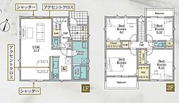 | 間取り | 3LDK 間取り内訳:洋室 7.1帖(1階)・洋室 6.2帖(1階)・洋室 5.7帖(1階)・リビングダイニングキッチン 20.2帖(2階) |