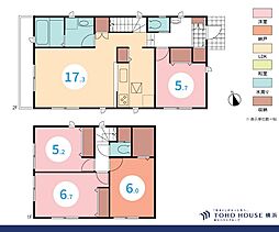 | 間取り | 3SLDK 間取り内訳:リビングダイニングキッチン 17.5帖(1階)・洋室 4.5帖(1階)・洋室 6帖(2階)・洋室 4.5帖(2階)・収納 5.5帖(2階) |