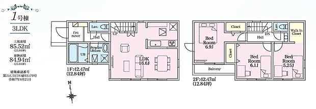 | 間取り | 3LDK 間取り内訳:リビングダイニングキッチン 16.6帖(1階)・洋室 5.2帖(2階)・洋室 6.1帖(2階)・洋室 6.9帖(2階) |