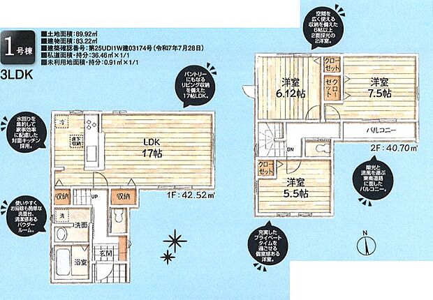 | 間取り | 3LDK 間取り内訳:リビングダイニングキッチン 17帖(1階)・洋室 5.5帖(2階)・洋室 6.1帖(2階)・洋室 7.5帖(2階) |