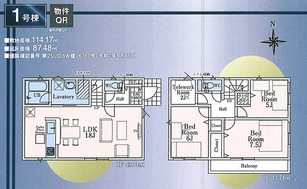 | 間取り | 3LDK 間取り内訳:リビングダイニングキッチン 18帖(1階)・洋室 5帖(2階)・洋室 6帖(2階)・洋室 7.5帖(2階)・その他 2帖(2階) |