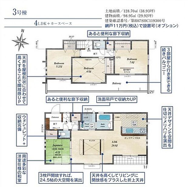 | 間取り | 4LDK 間取り内訳:リビングダイニングキッチン 20帖(1階)・和室 4.5畳(1階)・洋室 5.2帖(2階)・洋室 6帖(2階)・洋室 7帖(2階) |