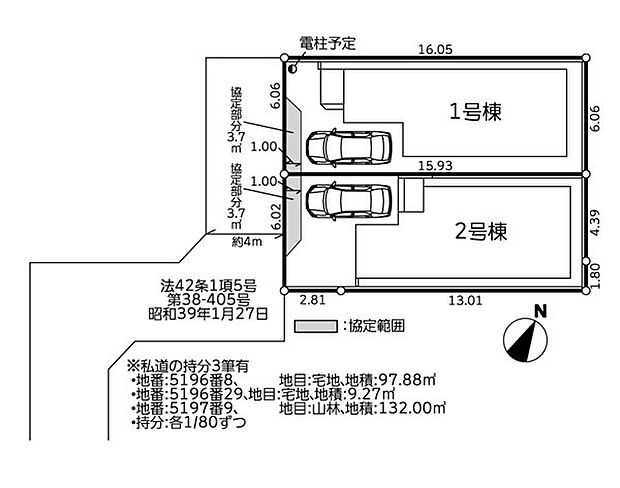 | 私道負担 | 239.15m2私道負担割合:80分の1 | 用途地域 | 第一種低層住居専用地域 |