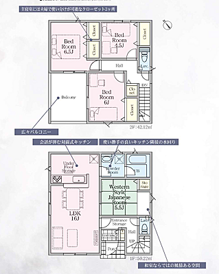 間取り内訳:リビングダイニングキッチン 16帖(1階)・和室 5.5畳(1階)・洋室 6.5帖(2階)・洋室 6帖(2階)・洋室 4.5帖(2階)