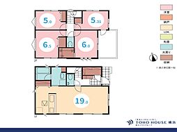 | 間取り | 3SLDK 間取り内訳:リビングダイニングキッチン 19.7帖(1階)・洋室 7帖(2階)・洋室 5.2帖(2階)・洋室 5.2帖(2階)・収納 4.8帖(2階) |