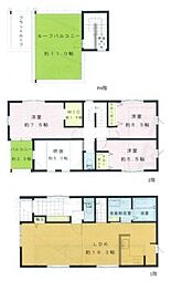 | 間取り | 3LDK 間取り内訳:洋室 7.6帖(1階)・リビングダイニングキッチン 15帖(2階)・洋室 5.5帖(3階)・洋室 10.6帖(3階) |