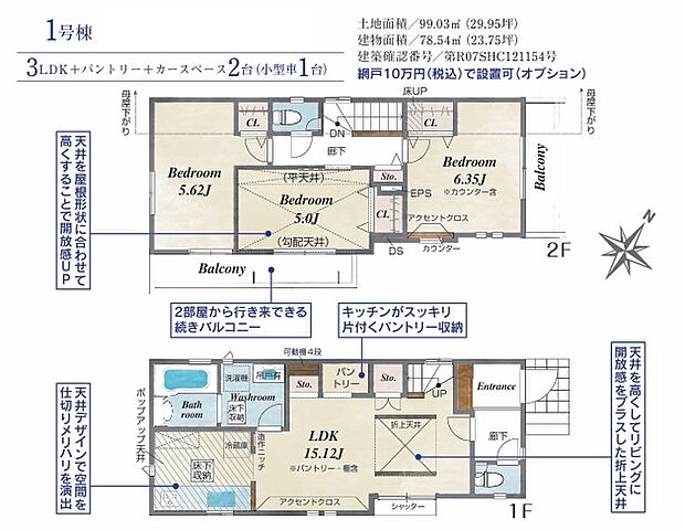 | 間取り | 3LDK 間取り内訳:リビングダイニングキッチン 15.1帖(1階)・洋室 5帖(2階)・洋室 5.6帖(2階)・洋室 6.3帖(2階) |