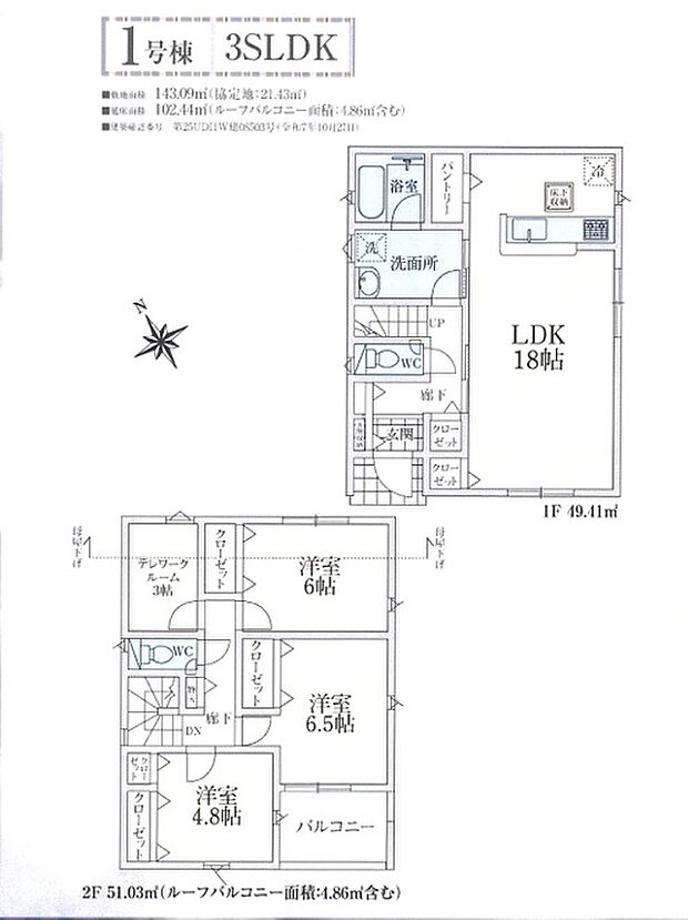 | 間取り | 3SLDK 間取り内訳:リビングダイニングキッチン 18帖(1階)・洋室 4.8帖(2階)・洋室 6帖(2階)・洋室 6.5帖(2階)・収納 3帖(2階) |