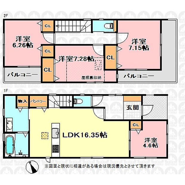 LDK16.35帖対面キッチン/収納豊富/ダブルバルコニー/グルニエ付/住環境良好/完成済みなのでいつでも見学可