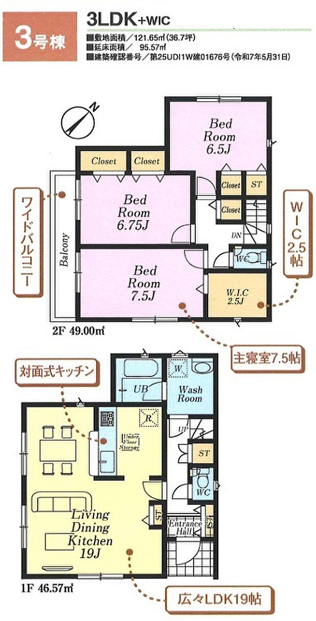 | 間取り | 3LDK 間取り内訳:リビングダイニングキッチン 19帖(1階)・洋室 6.5帖(2階)・洋室 6.7帖(2階)・洋室 7.5帖(2階) |