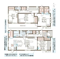 | 間取り | 4LDK 間取り内訳:リビングダイニングキッチン 17.5帖(1階)・洋室 6.7帖(2階)・洋室 5.2帖(2階)・洋室 5.1帖(2階)・洋室 4.3帖(2階) |