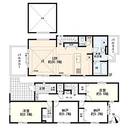 | 間取り | 2SLDK 間取り内訳:リビングダイニングキッチン 18.8帖(1階)・洋室 5.8帖(2階)・洋室 6.1帖(2階)・収納 5.4帖(2階)・収納 4.6帖(2階) |