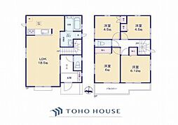 | 間取り | 4LDK 間取り内訳:リビングダイニングキッチン 18.5帖(1階)・洋室 6.1帖(2階)・洋室 6帖(2階)・洋室 4.5帖(2階)・洋室 4.5帖(2階) |