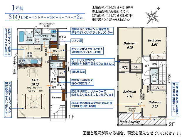 ※建物面積にインナーバルコニー部分:4.96m2、貯湯タンク部分:0.82m2を含みます。