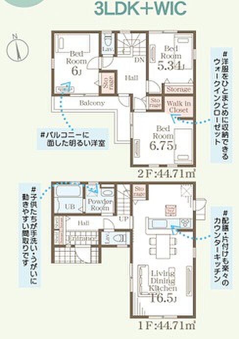 | 間取り | 3LDK 間取り内訳:リビングダイニングキッチン 16.5帖(1階)・洋室 6.7帖(2階)・洋室 6帖(2階)・洋室 5.3帖(2階) |