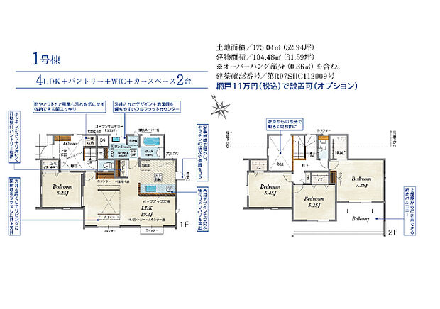 | 間取り | 4LDK 間取り内訳:リビングダイニングキッチン 19.4帖(1階)・洋室 5.2帖(1階)・洋室 7.2帖(2階)・洋室 5.4帖(2階)・洋室 5.2帖(2階) |
