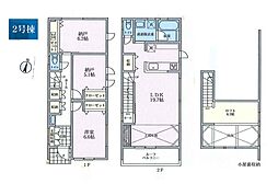| 間取り | 1SLDK 間取り内訳:収納 6.2帖(1階)・収納 5.1帖(1階)・洋室 6.6帖(1階)・リビングダイニングキッチン 19.7帖(2階) |