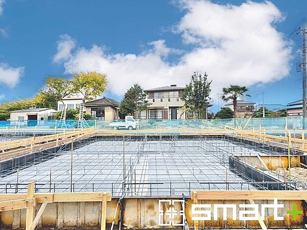 • 〜ベタ基礎でしっかりとした土台〜 ・コンクリートの中に鉄筋を配し強度を高めた「ベタ基礎」を採用。 ・しっかりとした土台を造ったうえで、その上に建物が築造されていきます。