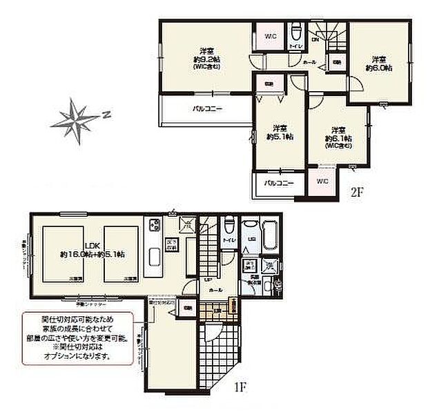 | 間取り | 4LDK 間取り内訳:洋室 9.2帖(2階)・洋室 5.1帖(2階)・洋室 6.1帖(2階)・洋室 6帖(2階)・リビングダイニングキッチン 21.1帖(1階) |