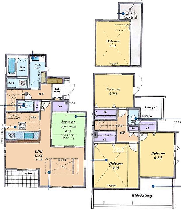 | 間取り | 4LDK 間取り内訳:リビングダイニングキッチン 16帖・和室 4.5畳・洋室 4.9帖・洋室 5.2帖・洋室 7帖 |