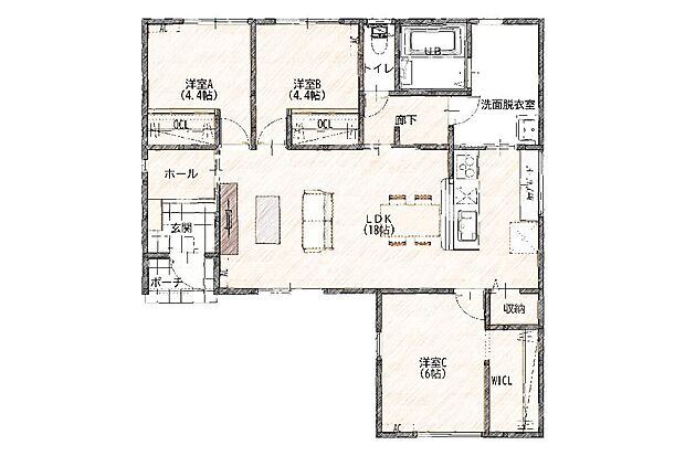 【家族がつながる間取り】全居室がLDKとつながるので自然とコミュニケーションが生まれる生活動線。 【収納充実&設備】ウォークインCLや食洗機など、暮らしやすさを考えた収納と設備が満載。 【ZEH・太陽光付き】高気密高断熱と太陽光4.4kW搭載で光熱費を抑える省エネ住宅。
