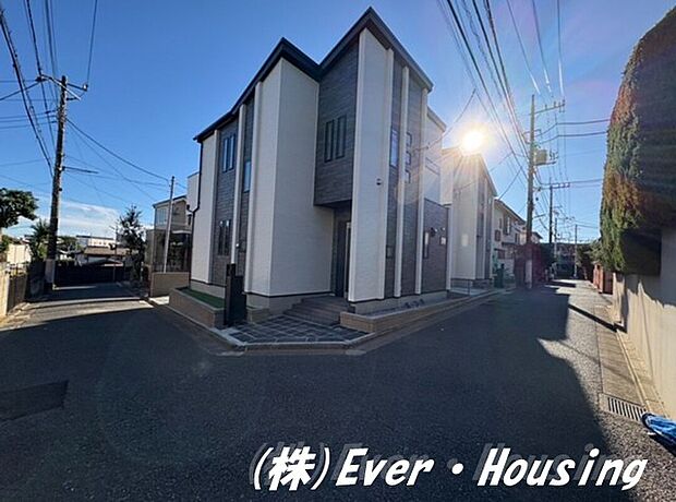 ゆとりある間取りの室内空間が魅力の新築住宅。 落ち着きあるおしゃれな外観がひと際目を引きます。
